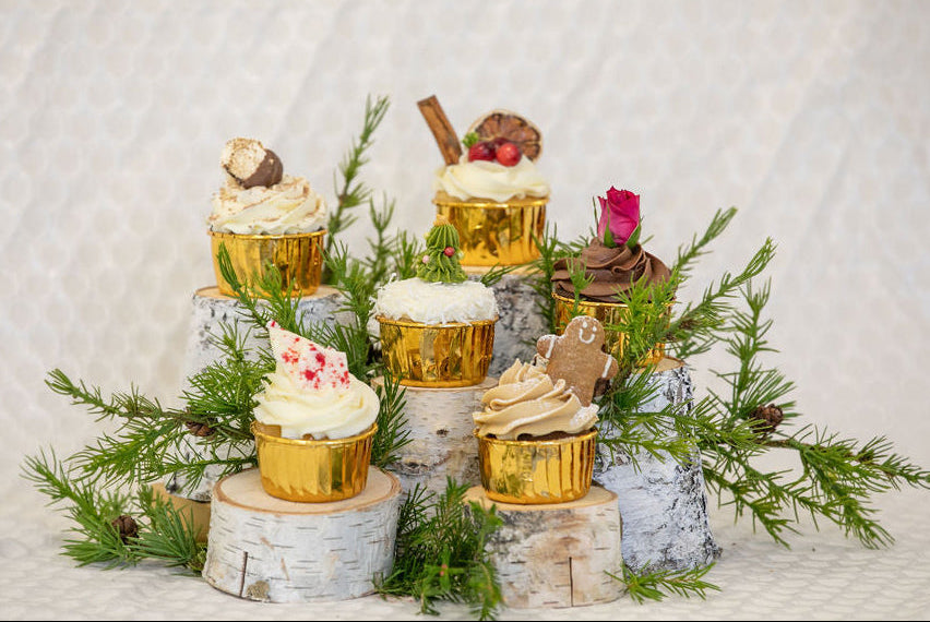 A holiday take on our classic mini cakes. Choose between a box of 6 or a box of 12. Each box comes with 6 assorted flavours.